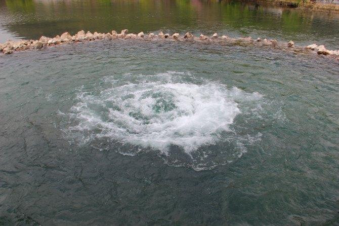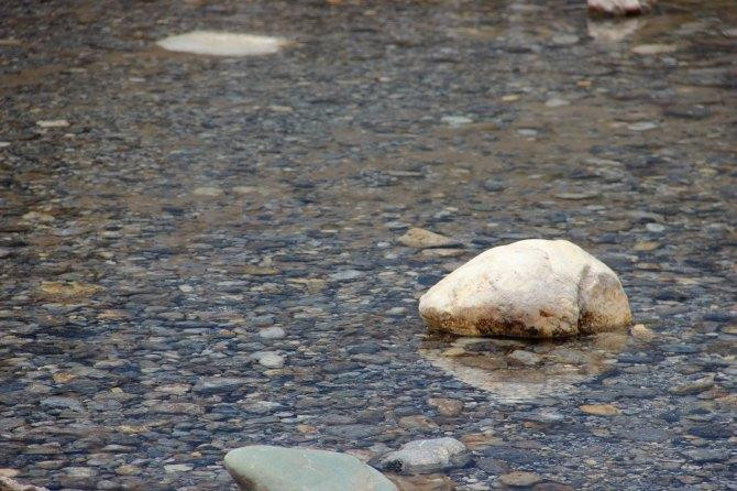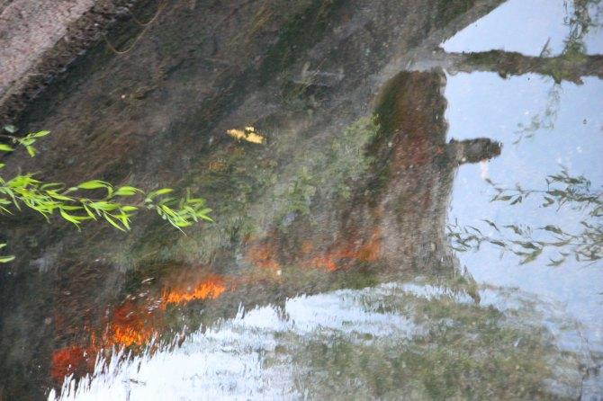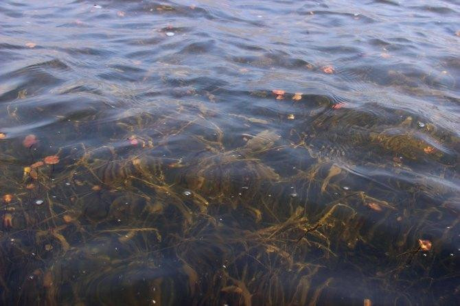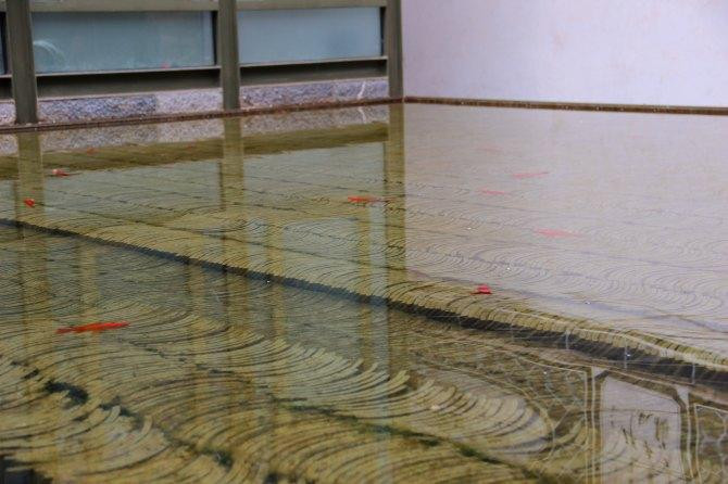 养金鱼的池子里面垫着瓦片,据说可以调节水温。