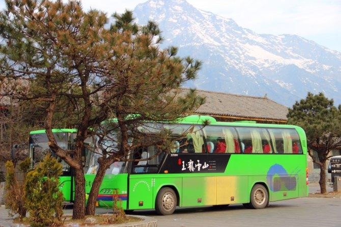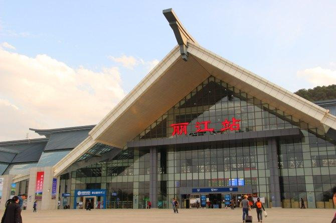 准点到达丽江火车站,我们住在南门,出站往右转50米左右有绿色出租车和蓝色面包车。面包车10元一个人,出租车开价50砍到30,途径丽江玉龙县民族中学,大门非常有特色。