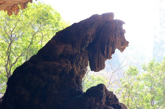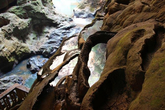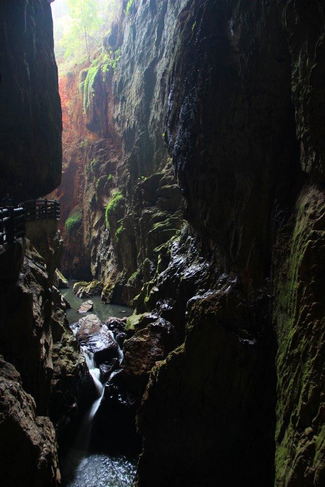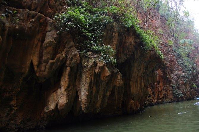 两旁的山上能看到钟乳石