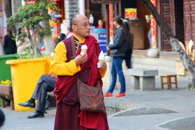 看见一群喇嘛舔着甜筒路过,无法直视,逮到一位落单的。