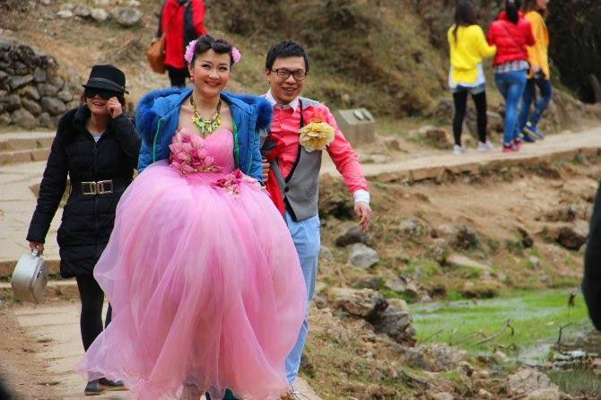 先骑马走茶马古道,2小时左右。据说骑马超过2小时屁股会痛。这边的马都是滇马,身材矮小但是耐力超好,马夫说我的马排行老三,比较调皮,出发前很兴奋的碰碰这匹马碰碰那匹马,吓死我了。