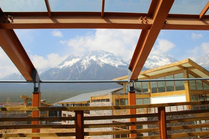 2楼的自助餐厅,一侧可以边吃边眺望雪山,很惬意,有一些纳西族的特色菜,有红枣汁等饮料,有排骨汤,还不错,而且餐厅的洗手间是此次云南之行的景点中最干净整洁的,有热水洗手。
