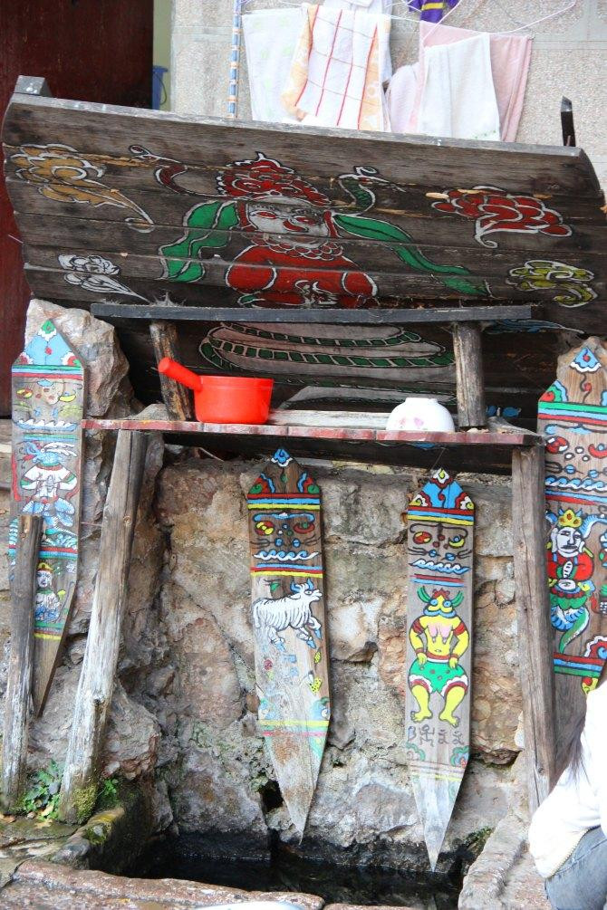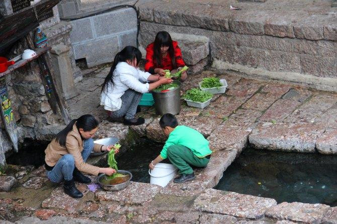 当地人用的三眼井,最里面的井水用来喝,第二口井用来洗菜,第三口井漂洗衣物。