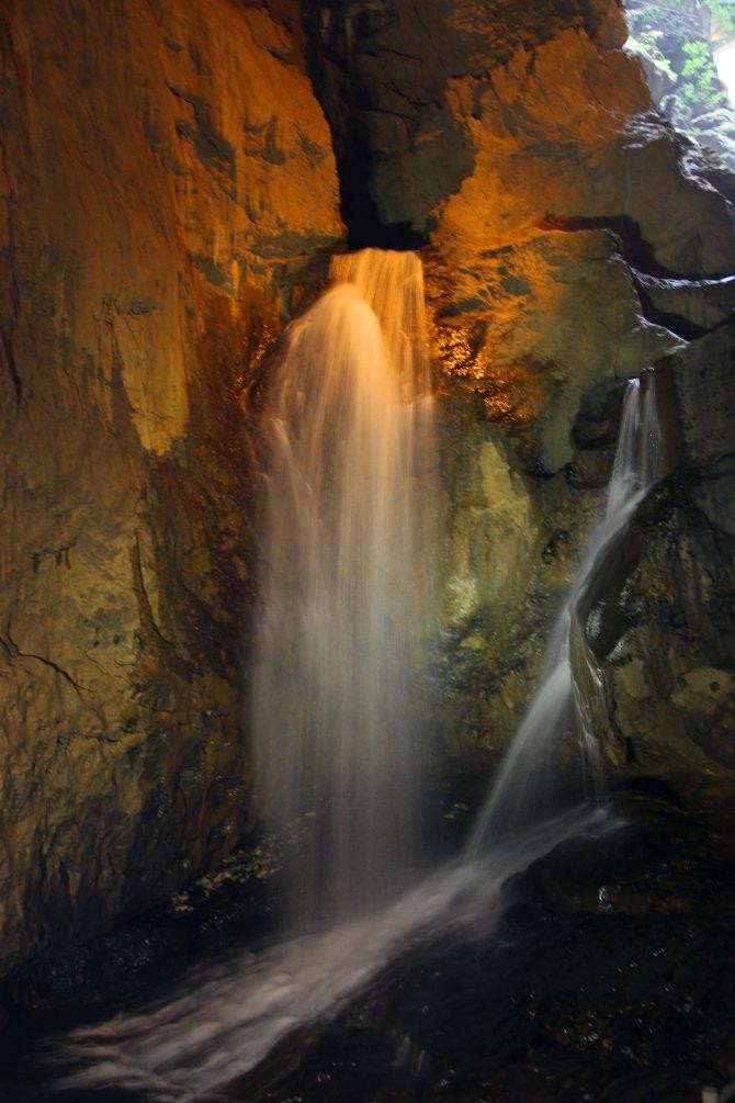 洞内瀑布,此处设有照相摊位,很多人在此留影