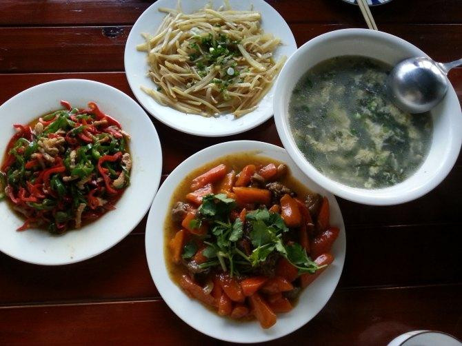 回客栈,晚饭在客栈吃的。三菜一汤,很清爽,还不错