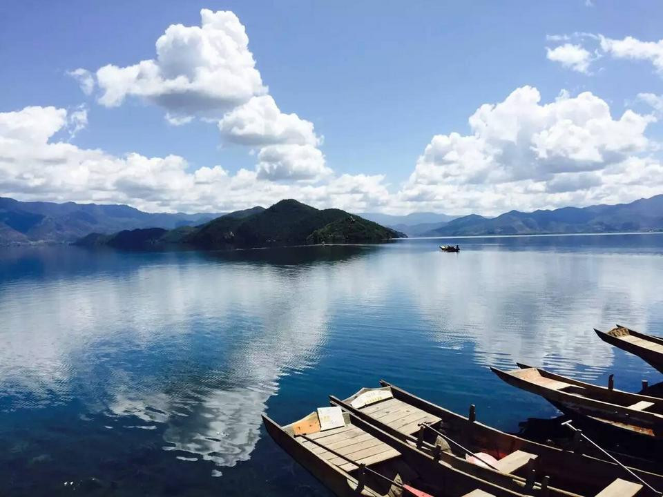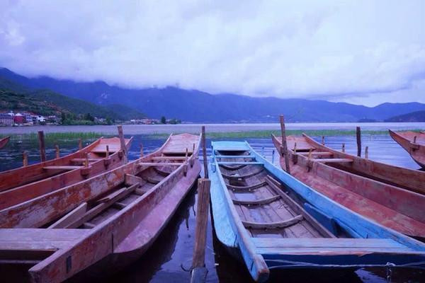 第四天早晨5点,我们已经坐上了去泸沽湖的车。当然也是跟团,(嘿嘿哈)到泸沽湖行程原本需要6小时,司机是个叫小熊的当地小伙子,带我们抄了近道,只花了4小时就到达了泸沽湖。可惜天公不作美,刚下车就淅沥沥的下起了雨,雨中的泸沽湖有些悲伤,并未绽放全部的美丽。11点多时,我们荡漾在女儿国的湖水中,吃着特色烤土豆,看着水性杨花飘在波光中,摩梭族的阿哥们在船头唱着当地的歌曲,心情也随着湖泊摇摇曳曳~