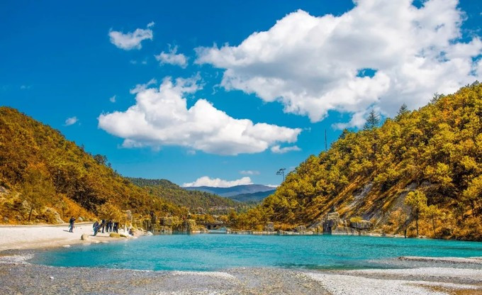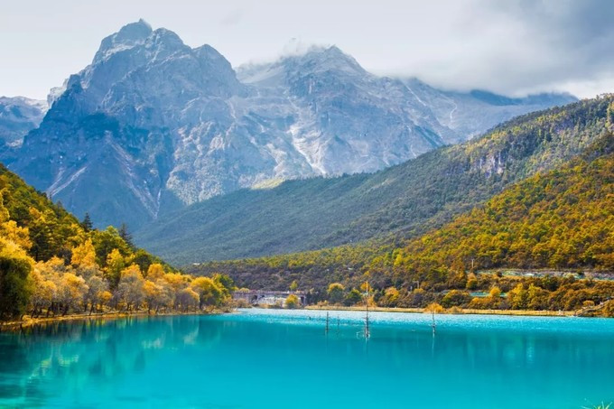 蓝月谷也有着“小九寨沟”的美誉,犹如一个蓝色月亮镶嵌在玉龙雪山下,是玉龙雪山新兴的网红打卡地。