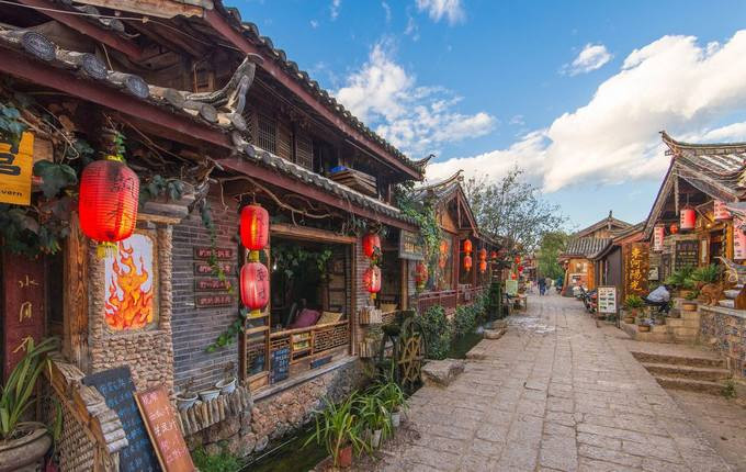 从丽江古城往北,沿中济海东侧的大路行约四公里,便见两边山脚下一片密集的村落,这就是被称为清泉之乡的束河古镇。束河位于丽江所有景区的核心部位,是游览丽江古城、玉龙雪山、蓝月谷、长江第一湾和三江并流风景区的枢纽点。