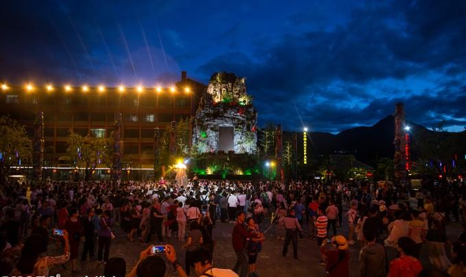 到了千古情景区有两场表演不容错过,一个是最有名的歌舞剧《丽江千古情》,一个是实景演出《丽江恋歌》。有朋友问过我说看过了《丽江千古情》还有必要看《丽江恋歌》么?我说这两个节目完全不是一个风格,每一个都独具特色。恋歌乐园的上演时间是每天的下午六点到六点半,在专门的实景剧场上演,就是下图左下角的位置。