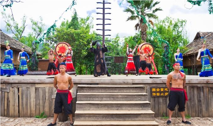 千古情有许多的表演项目,其中有所谓的十大演艺秀,除了《丽江千古情》和《丽江恋歌》之外,还有《木府招婿》、《爬花楼》、《穿越快闪》、《笑擒刘一刀》、《风雅阁》、《上刀山下火海》、《命悬一线》、《木府点兵》等。看完《笑擒刘一刀》之后,我接着去看了《上刀山下火海》,非常刺激啊有木有,而且人太多了直接把我挤到了后面。