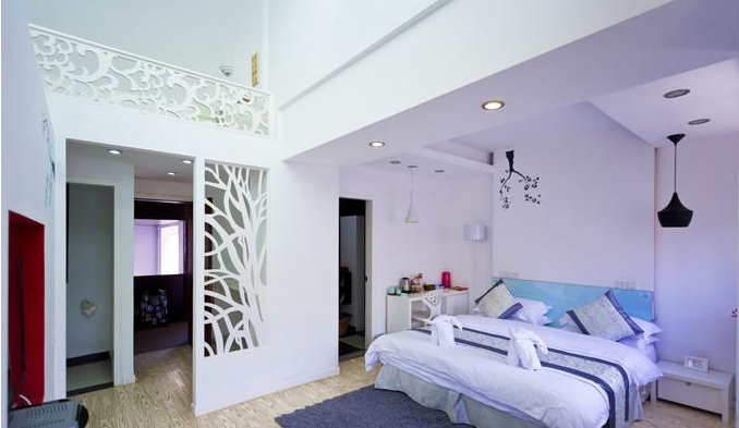 住的是家庭套房,房间比较大,功能区划分比较的明确,二楼还有一个阁楼,阁楼上有一张小床可以给孩子睡,特别的方便。