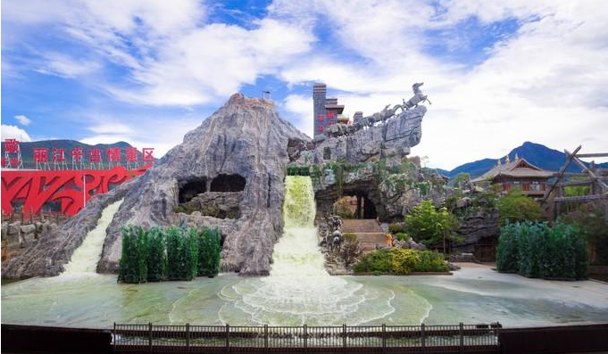 千古情景区里面的内容非常丰富,今天一天我都将在这里度过。整个景区主要包含了茶马古街、那措海、雪山沙滩、各种云南少数民族村落、千古情广场、大型室内科技游乐综合体等主题区域,此外还有两场大型的演出分别是前文提到的室内大型歌舞剧《丽江千古情》以及露天大型实景表演《丽江恋歌》。