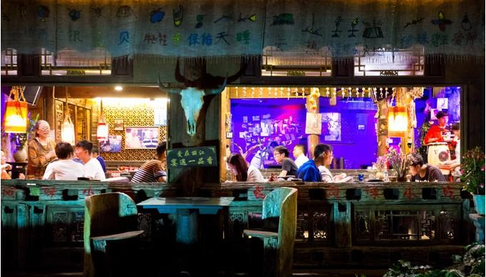 四方街不愧是整个古城最热闹的地方,不管是淡季还是旺季,永远是熙熙攘攘,人头攒动。说来好玩,来了这么多次四方街,从来没进过这里的酒吧。
