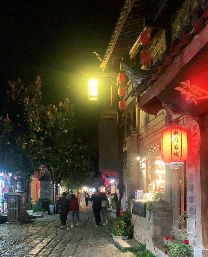等到夜幕完全的降临,就可以沿着石板路慢慢的下山了,这个时候的丽江古城是最有味道的。从四方街慢慢的走回南门附近,从喧嚣中回归于平静,在丽江的第一天就这么过去了。