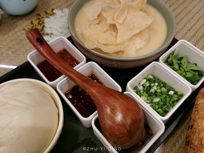 ④稀豆粉是云南特色,稠稠的黄豆粉,可以按自己的口味加辣加葱加鱼干