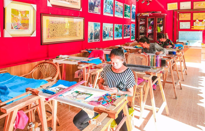 扎染的图案相对简单朴素,如蝴蝶、腊梅、海棠等;也有整幅图案花样,如白色小圆点的“鱼子缬”、圆点稍大的“玛瑙缬”等。如今这项传统技艺已被列入国家非物质遗产,而 白沙古镇 中的几家扎染房也担负起了传承的使命。