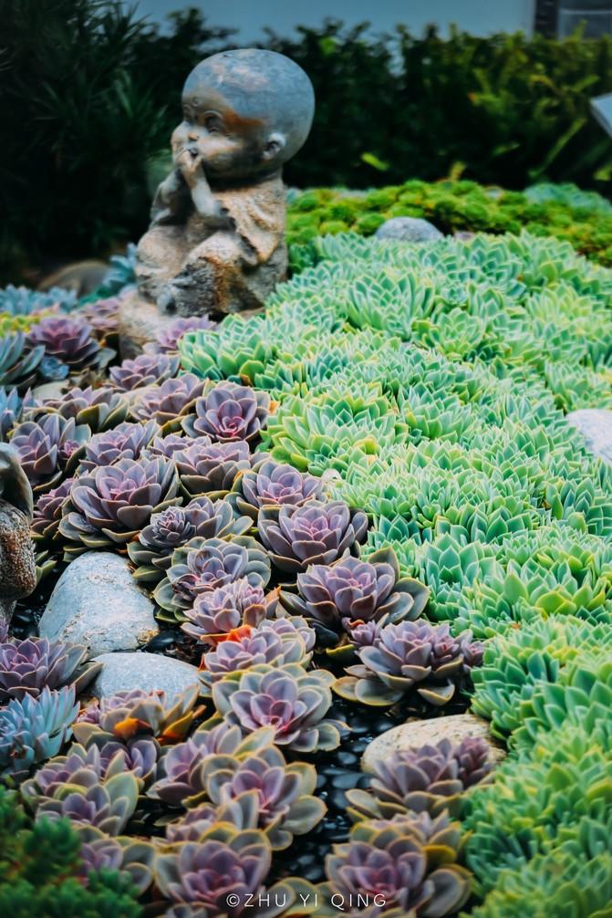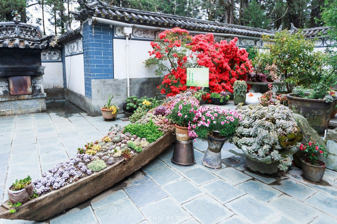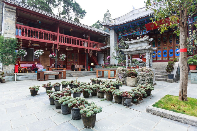 寂照庵始建于明初,被毁之后,民国时期又重新修建,寺庙周围种植着各种各样的植物,处处透着清新淡雅的空气。在寂照庵中,除了鲜花外,还能发现一个很明显的特点,那就是这里养了非常多的多肉植物,在寺庙中,多肉植物是占最多数的。因为寂照庵绝佳的地理位置,可以受到充足的阳光。而云南早晚温差大的气候,给多肉提供了更好的生长环境,所以寂照庵的多肉长得饱满又健康。