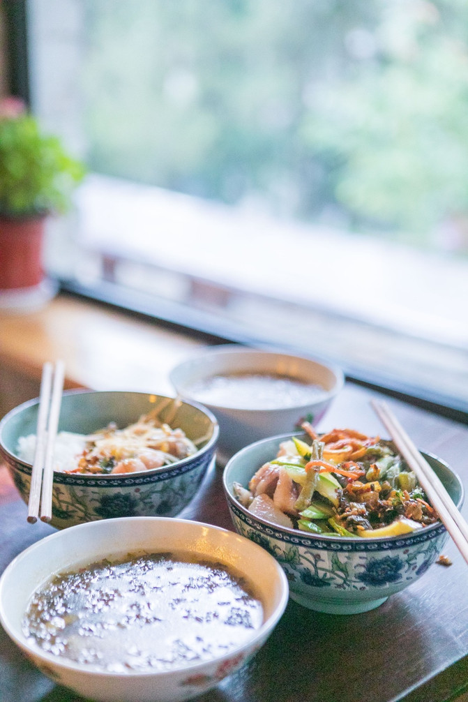 不管是不是饭点来,餐厅里都坐满了人。我是下午三点多过去的,也是高朋满座,受欢迎到这种程度也是神奇了。窗边是半开放的设计,端着我的米线坐在窗边,看着外面来来往往的人,古镇的生活真是惬意又滋润。