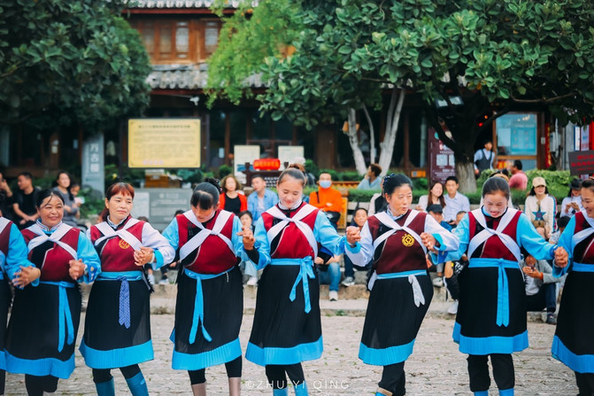 四方街的广场上,纳西族载歌载舞,少数民族独特的舞蹈总能吸引游客围得里三层外三层。不过好像每年来看的表演人都不同,今年纳西族的阿姨妈妈明显比较多。