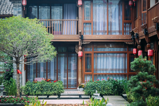 院子里种着许多多肉和五颜六色的花卉,充满了朝气。一步一片花,回眸皆是景,住在这里就像住在园林里一样。在花丛的簇拥中,拍照非常好看,女孩子们肯定很喜欢。当我在院子里拍照时,还有不少游客以为这里也是景点走进来拍照,客栈也都是非常欢迎的。