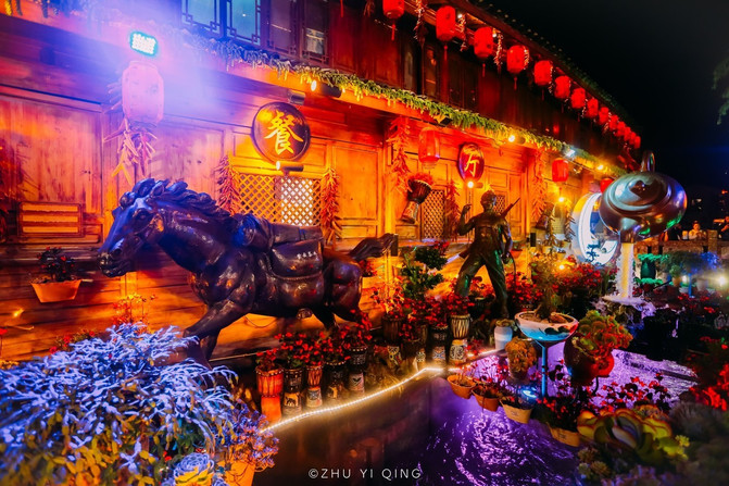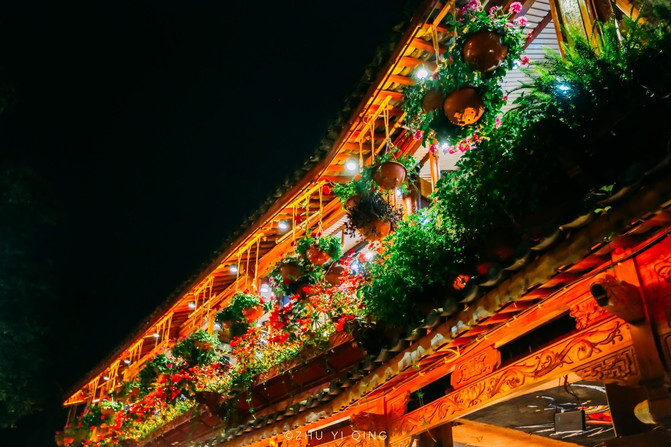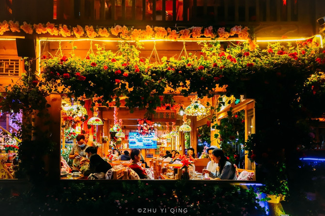 与其说它是餐厅,不如说是今年丽江最火的打卡点。鲜花铺满了整个河道,晚上亮起黄黄的灯光,非常小资。