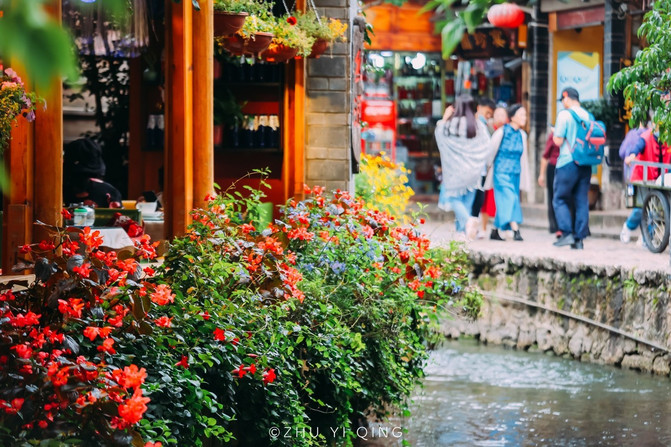 随处可见的花朵,虽然没有六月时开得那么旺盛,但也将古城点缀得活色生香。即便是在这个特殊的2020,古城里的人也不少,大概都像我一样,喜欢来丽江过一过避世的慢生活。
