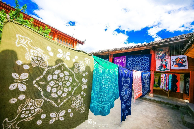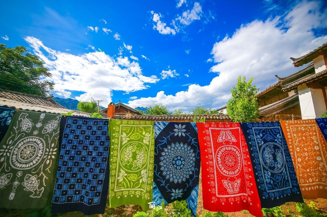 来之前,我就听说 白沙 最出名的就是扎染,这里随处可见扎染布料晾晒在外,扎染工艺属于民间特有的染布方式和晾晒方式,由于很多户人家以此为生,便构成了 白沙古镇 最靓丽的风景线。