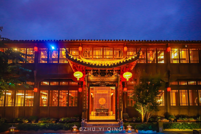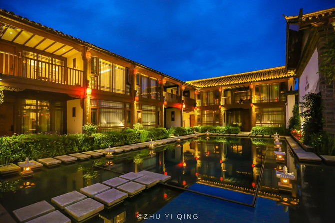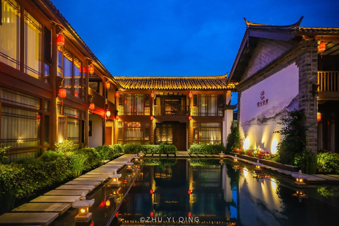 入夜后的泊心云舍有着不一样的宁静,院子华灯初上,光影倒映在亲水池上,漂亮极了,前厅里有老人们在打牌聊天,也有人在树荫下喝着小酒,沉醉在大理的夜晚,烦恼抛诸于脑后,可别提有多惬意了。