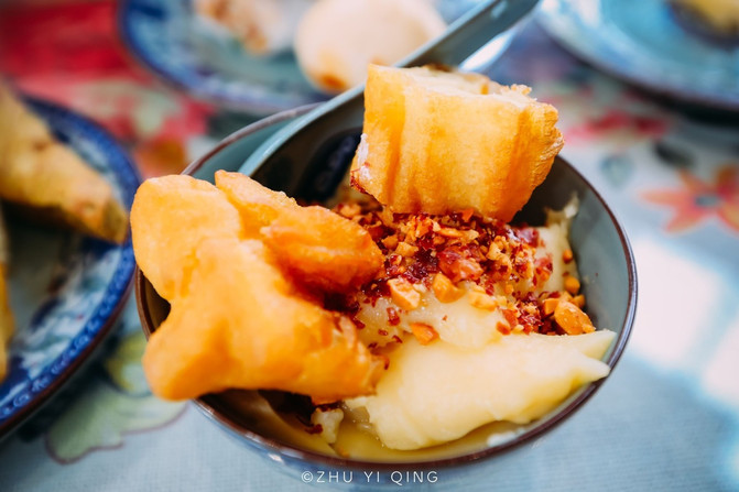 下楼来吃个早饭,各种各样的大理美食,在早餐就能尝个够。大理特色稀豆粉,当地最出名的早点,吃稀豆粉的时候一定要来一根油条,还要用剪成一段一段的,跟稀豆粉拌在一起吃,简直不要太美味!我保证你会爱上它。