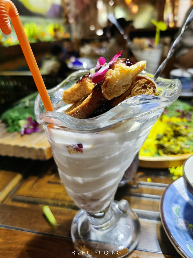 又点了杯喝的,泡鲁达,这个真的是踩坑了,就是椰奶上面加一点面包干,对不起这价格。