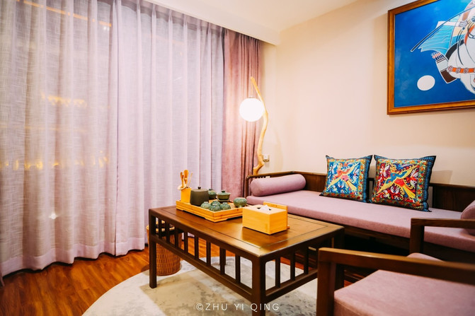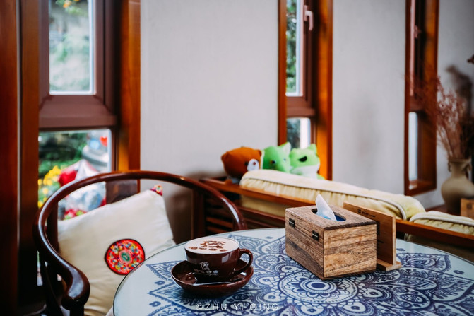 窝在前厅里的沙发上,看着窗外淅淅沥沥的小雨,虽然不能出去耍,但呆在泊心家,倒也是别有风味。典雅的中式风格,处处都充满了各种拍照的元素,不能出去,那就在院子里拍个够吧。
