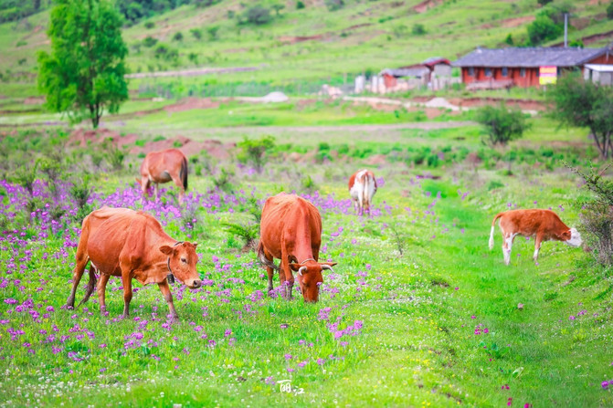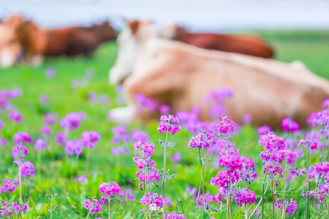 草原上放养着成群的牛马,春夏虽有花开,但湖水不涨,也就无法尽情领略满眼碧水。所以 文海 这地方得来两次,一次为花而来,一次为蓝色湖水而来。