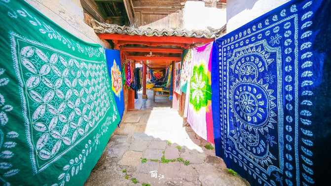 每走入一个染房,就像进入了扎染博物馆,这些五颜六色的布匹在阳光的抚摸下,诉说着古老工艺的精髓和染布技艺的历史,匠人的精神在古朴的小镇中静静传承着。