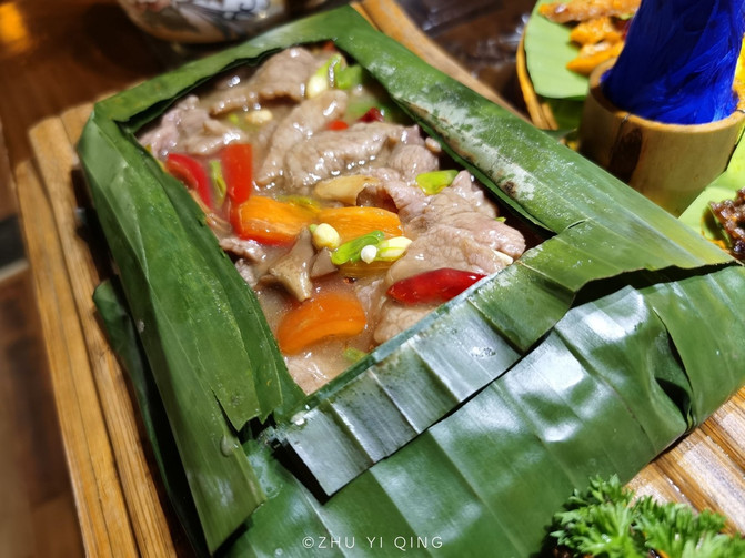 我们两个人点了三道餐,都说是店里的招牌菜,荷叶包烧牛里脊,傣族手抓饭、还有点道羊肉来着,总体味道感觉一般,没有点评上写得那么惊艳。