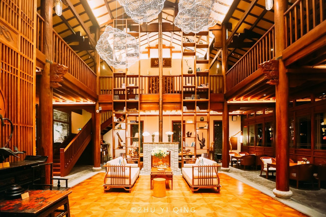 原木的风格看似非常江南,但其中又融合了许多当地的纳西风格,泊心的家园就是这么自然地融入到当地的人文环境种,在很多细节中,都能看到设计的用心之处,无论是茶几还是灯光的造型,都透着院子主人对于品质的追求。
