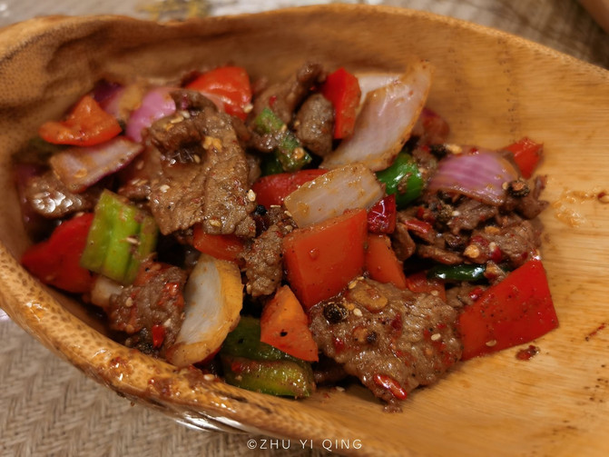 ⑥牦牛肉和山猪排嫩嫩的,看着辣椒多但其实不辣。