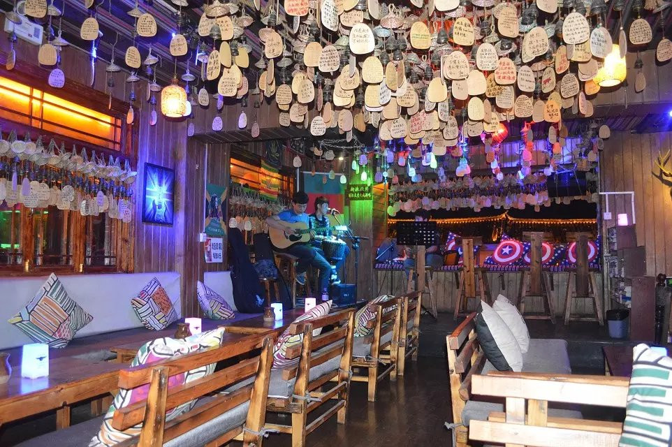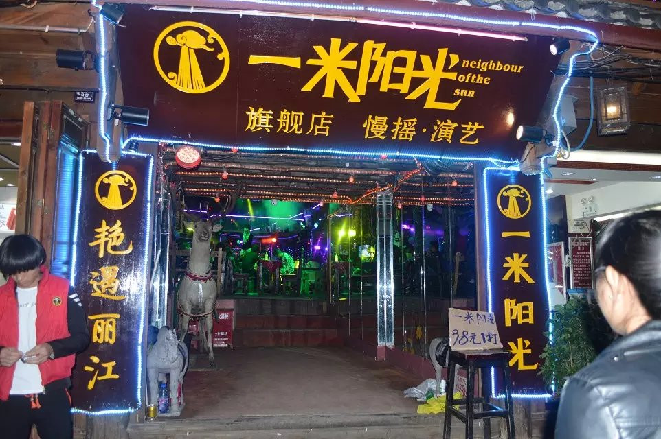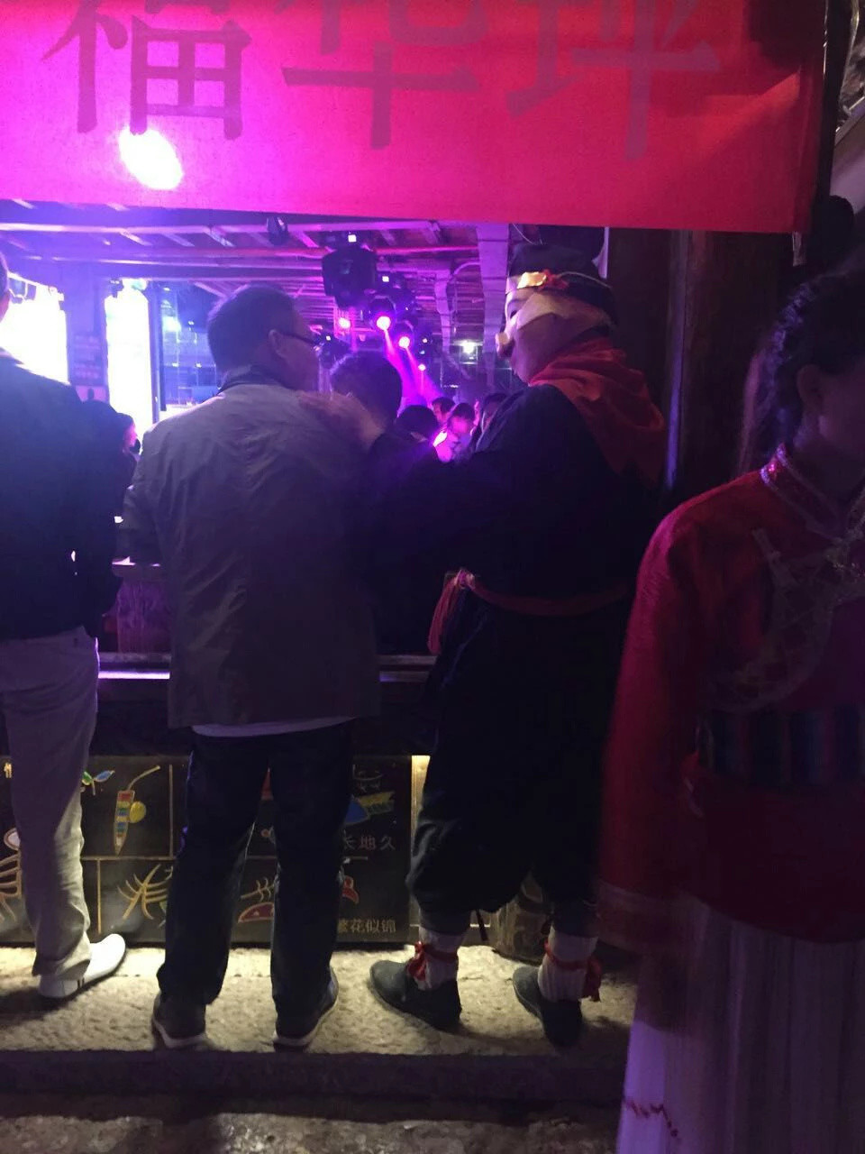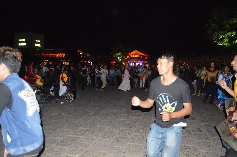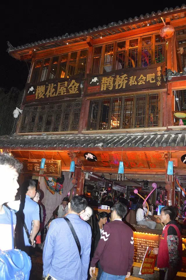 吃完后,周大叔说来丽江怎么也要去酒吧坐坐撒,我们点头,他接着说,我的酒吧就在四方街,过来喝几杯吧。纳尼,他还有酒吧,又有免费的酒喝,一路过去,全是喧嚣。好不热闹。
