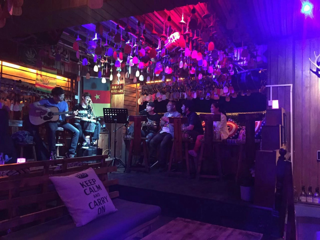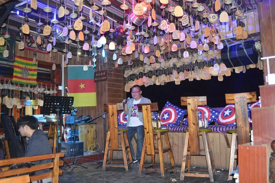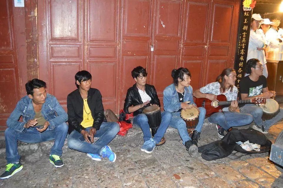 左数第一个忘记了,第二个手鼓手伴唱,重庆崽儿。第三个乐队主唱。第四个我,不知道啥时候乱入的。第五个云南彝族的主唱,第六个彝族哥们。