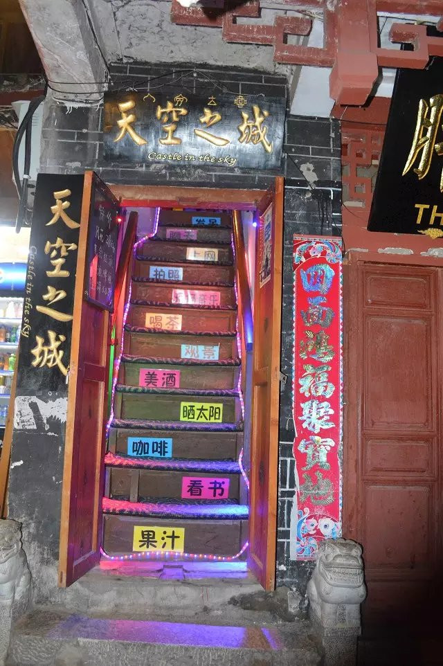 来到四方街,周大叔的酒吧就在四方街牌坊的旁边二楼,天空之城。