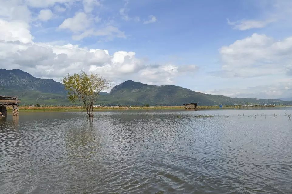 跟着所谓的茶马古道,走上山就看见了拉市海湿地。