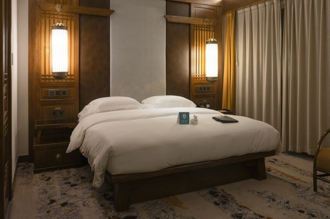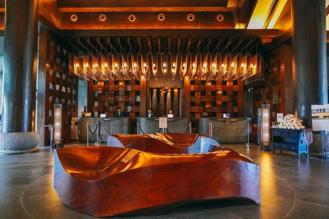 前台接待台就像是三个小岛,而接待台后方悬挂着的悬鱼图案,宛如鱼儿在岛中穿梭,和 丽江 纳西族在房屋上悬挂着的悬鱼板有异曲同工之妙,寓意着房舍平安。