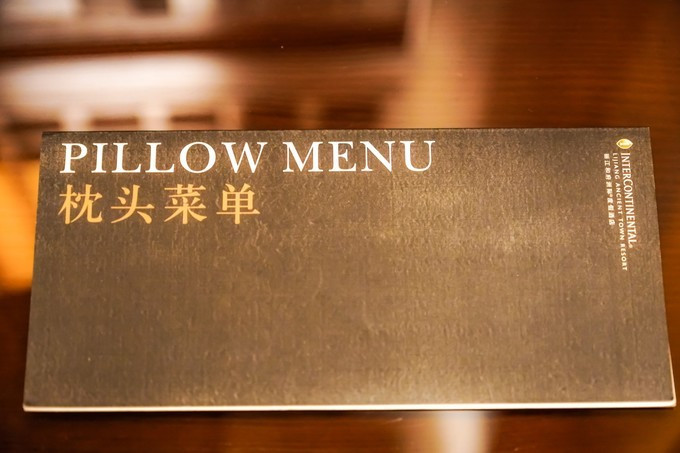 床边放置的枕头菜单,非常人性化,可以根据自己的喜好,选择适合自己的枕品