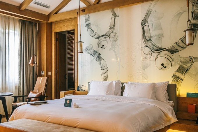 如果说洲际想要给客人的是纳西文化的氛围,那英迪格则到处彰显着马帮文化的特色,茶马古道的文化元素贯穿整个酒店。
