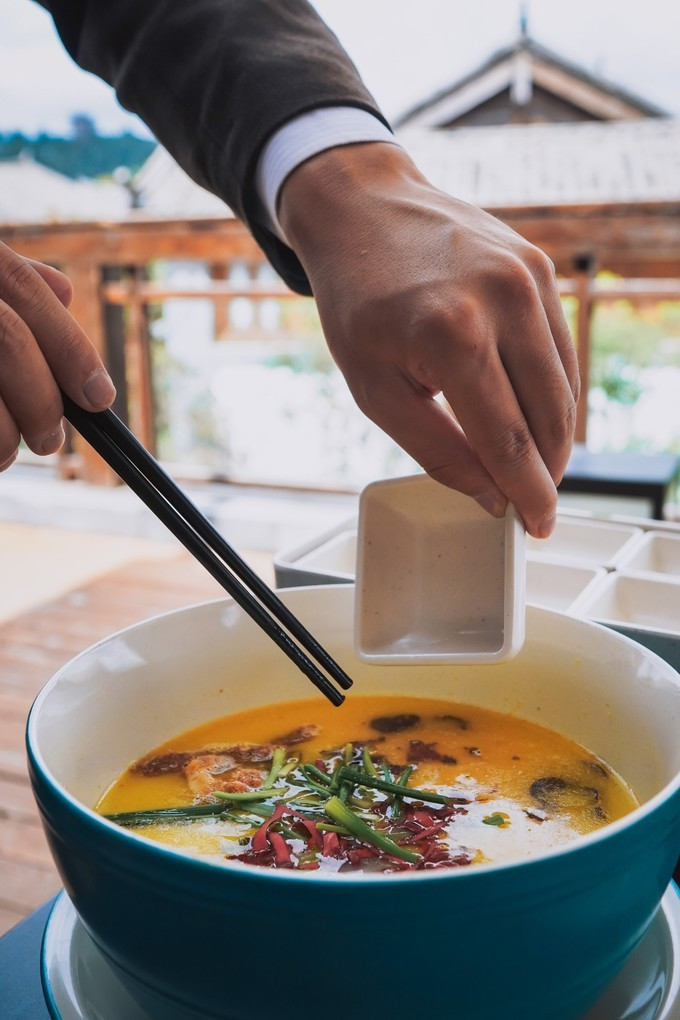 我们点了他们的悦食火锅套餐,一共有四款,冬阴功火锅,番茄牦牛锅, 云南 土鸡锅,川渝麻辣火锅,既然来 丽江 ,必须吃这里的特色纳西腊排骨土鸡,也特别适合孩子吃。