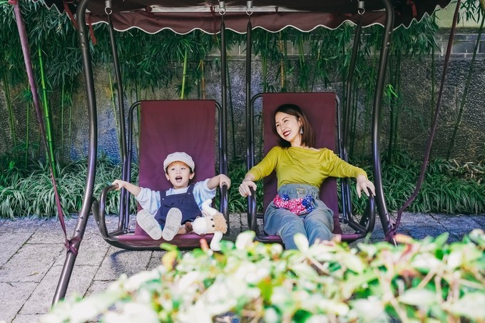 我们入住的是面积128平方米的别墅,一座2层楼的独栋,有一个单独的小院,非常静谧,看到院子的时候,孩子可开心怀了,立马拉着我坐在摇摇椅上,一起玩耍。