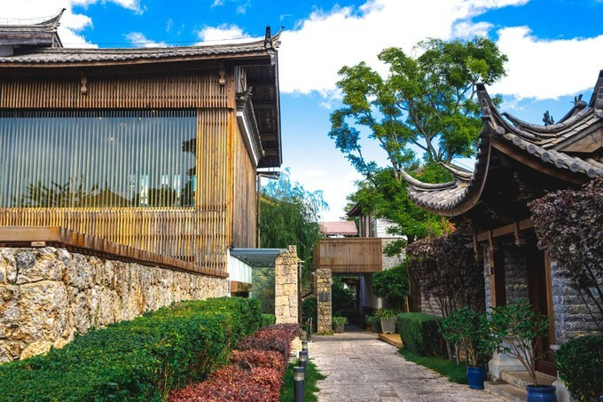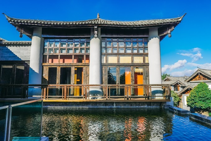 游走在洲际度假村,像是穿梭在纳西族的古村落中,一栋栋小型的纳西特色建筑,散落其中,这里的建筑都是参照 云南 当地的特色“三坊一照壁”“四合五天井”来设计的,处处融入纳西文化的元素。
