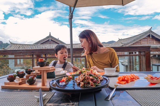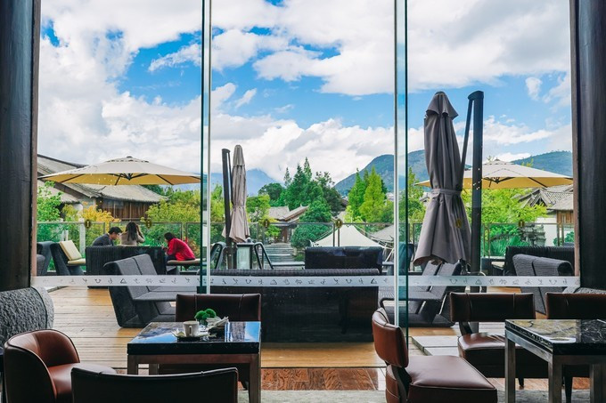 餐厅有户外露台区域,如果不怕太凉,建议可以坐在这里享用早餐,这里正对着 玉龙雪山 ,听说11月的季节,几乎每天都可以看到 日照 金山,一边享用早餐,一边看壮丽风景,这个观景平台,必须加分!