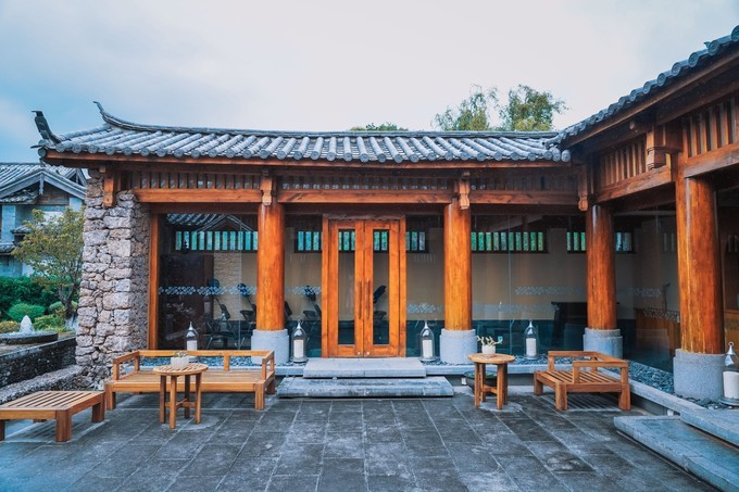 水疗中心位于日月广场旁,他像是一座纳西院落,简洁进入之后便感觉卸下了所有的压力。