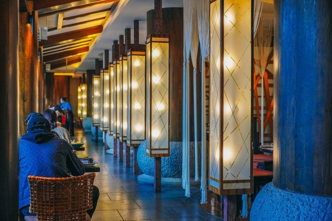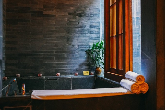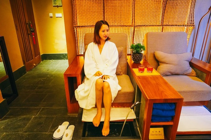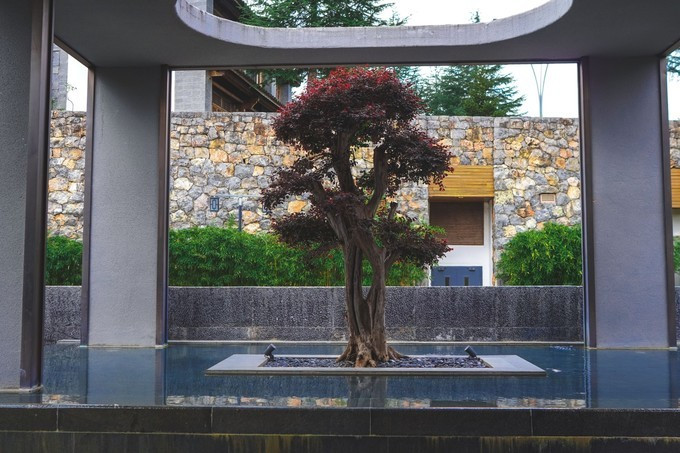 跟着工作人员步入下一层,进入后才发现别有洞天,整个水疗中心做成了一个下沉花园,保证了一定的私密性,古风古韵的设计感,巧妙的结合了大自然的灵气,让整个空间都营造出隐于俗世且悠然自得的氛围。