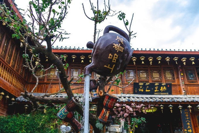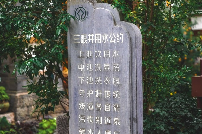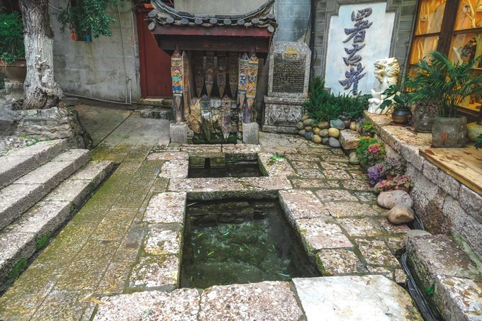 具有 丽江 标志性的大水车,象征黑龙潭的水潭,小溪从家家院落前流淌而过,还有那极具代表性的三口井,每一口都有着不同的使用方式,这个在 丽江 古城内现在也依然能够找到。